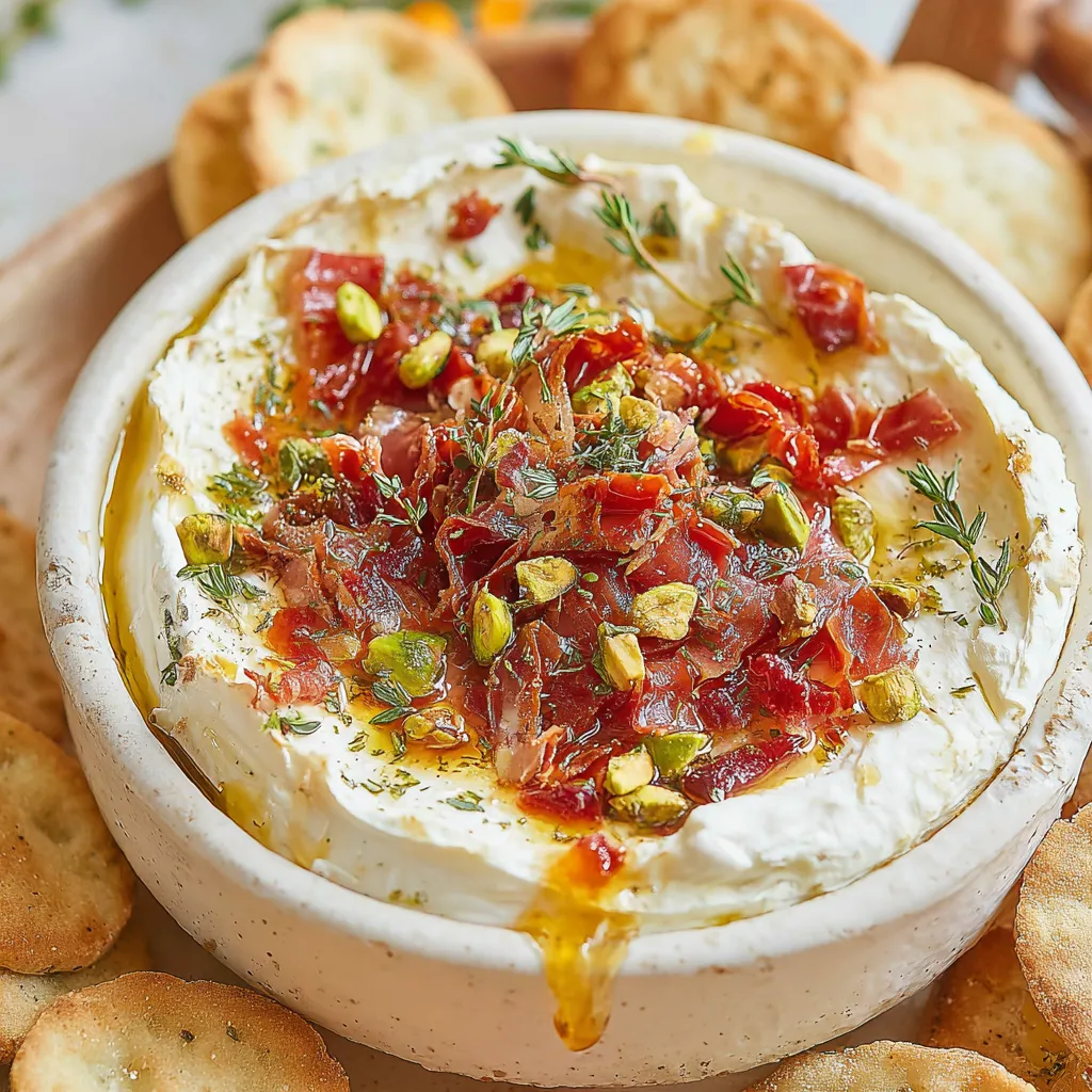 Whipped Brie Cheese Dip with Crispy Prosciutto, Hot Honey & Pistachios